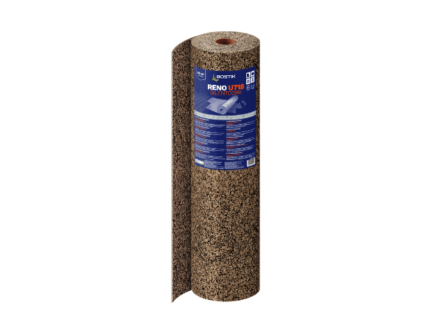 RENO U718 SILENTCORK: Sustainable cork underlay providing superior impact-noise reduction and enhanced walking comfort in a low-profile format.